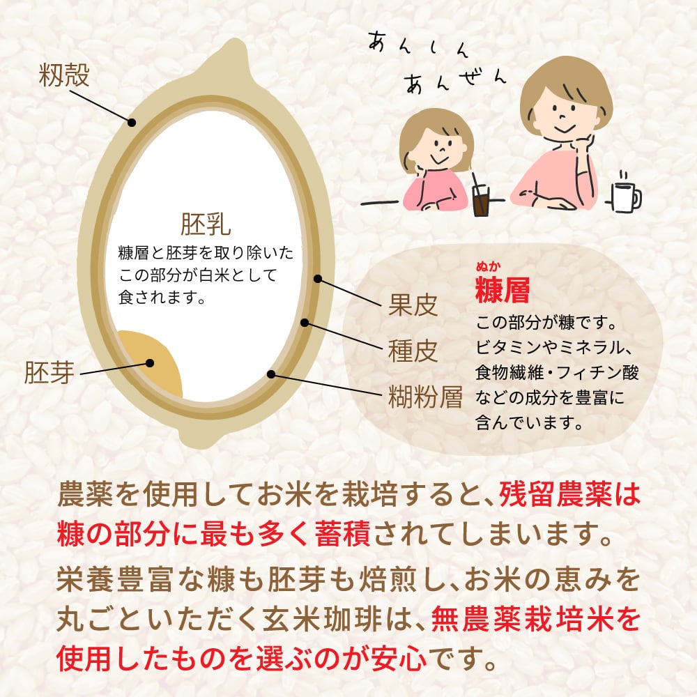 鹿児島県産の無農薬・有機JAS認定栽培玄米のみ使用。