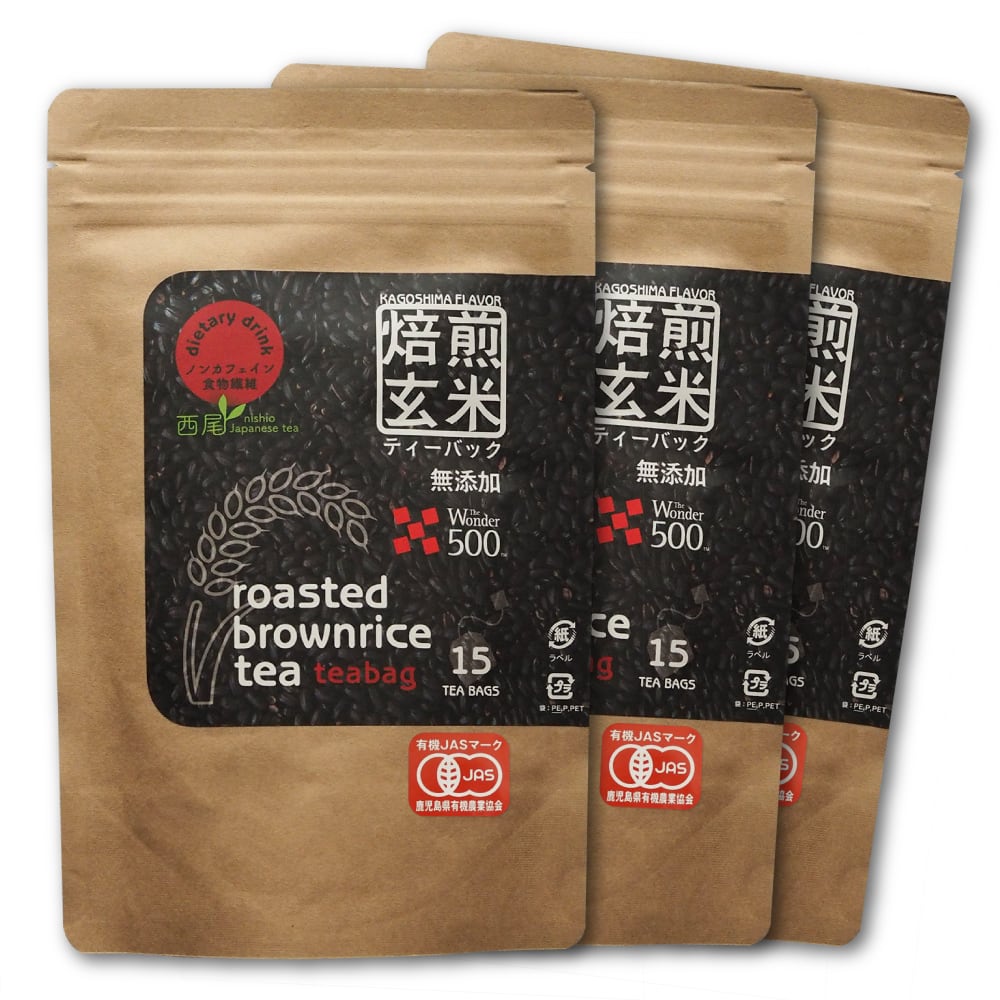 玄米珈琲ティーバッグタイプ 3袋セット(5g×15包入×3袋)(鹿児島県産 無農薬 有機JAS玄米100%使用 ノンカフェイン 玄米コーヒー)